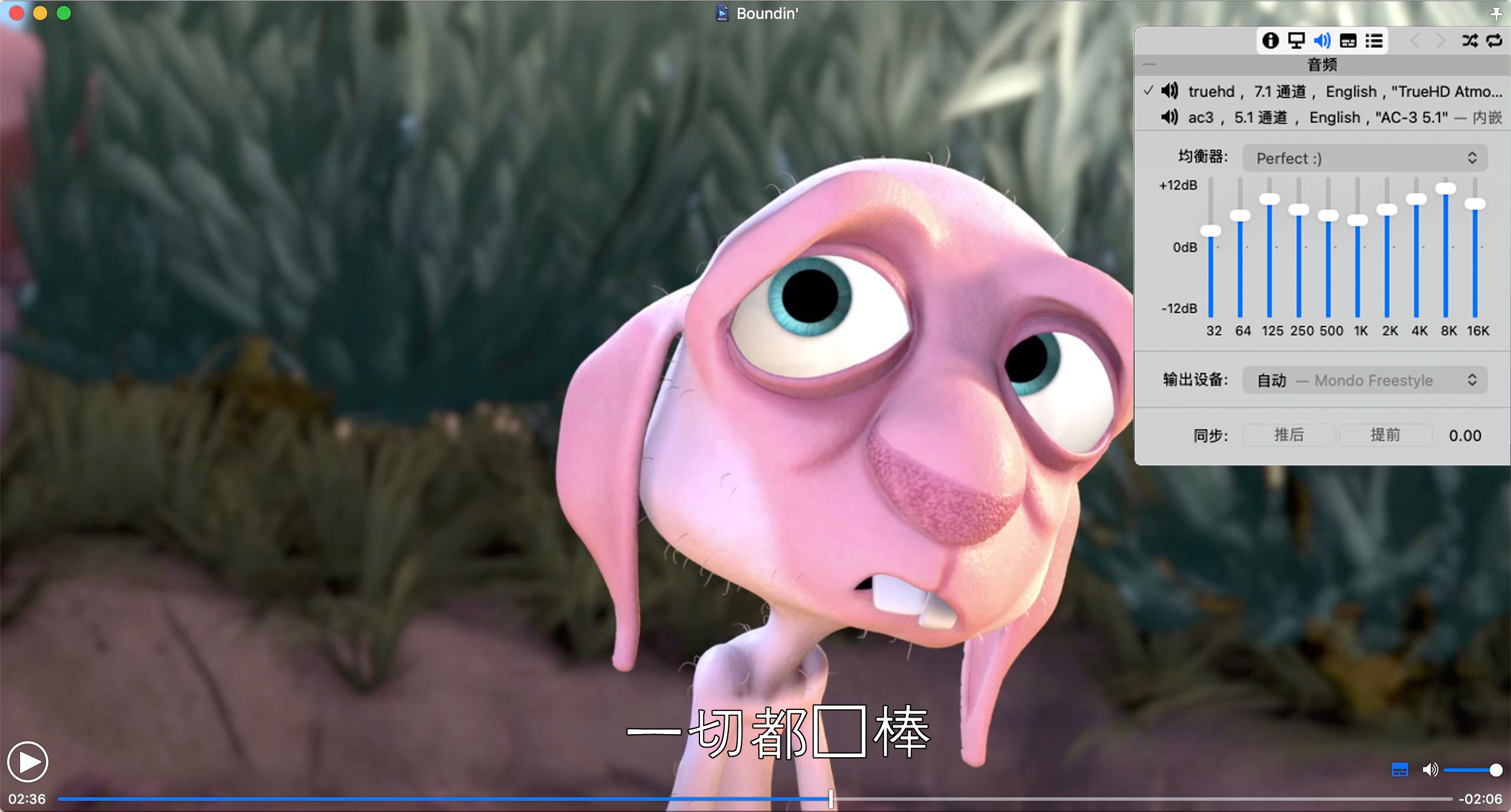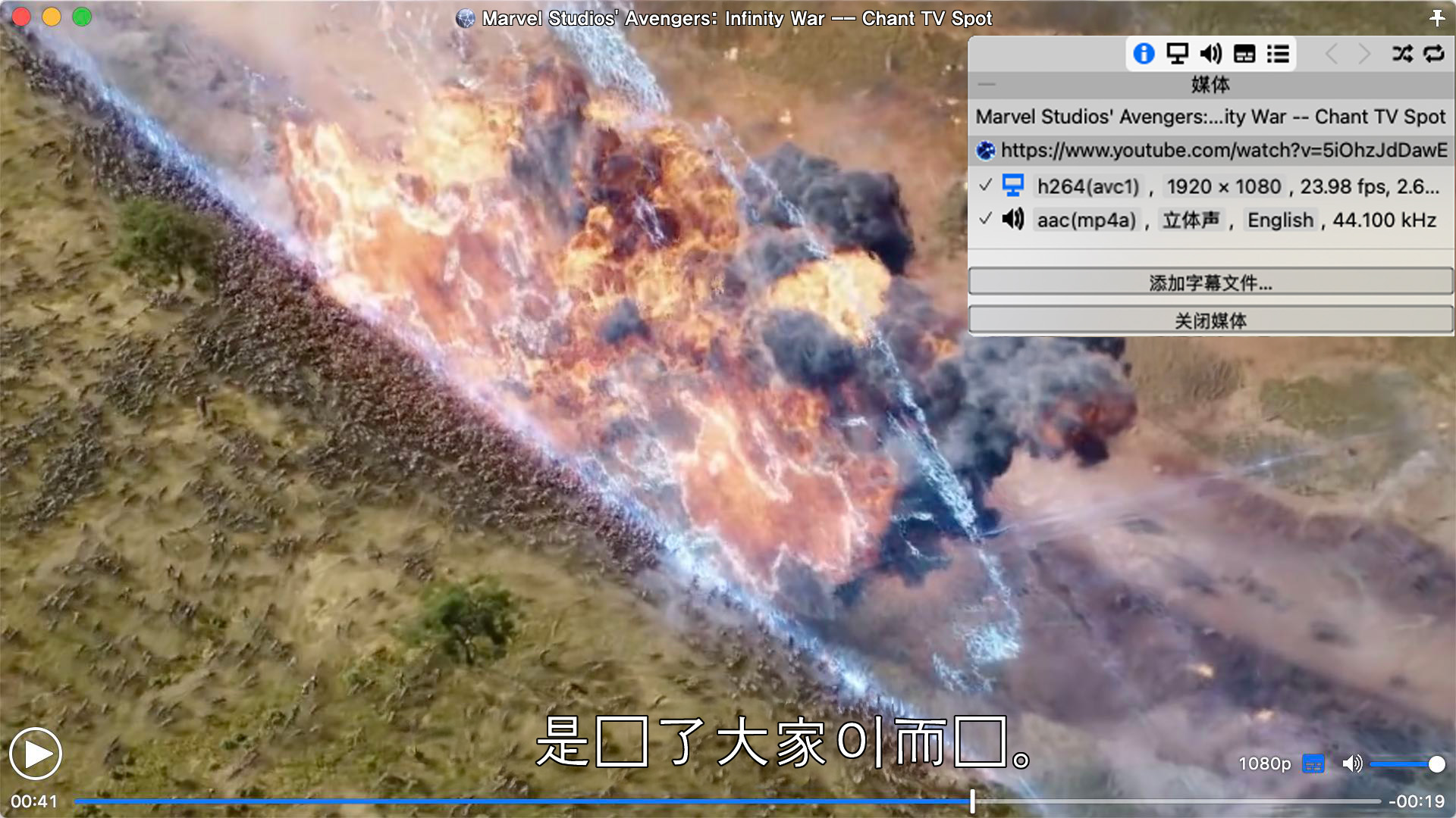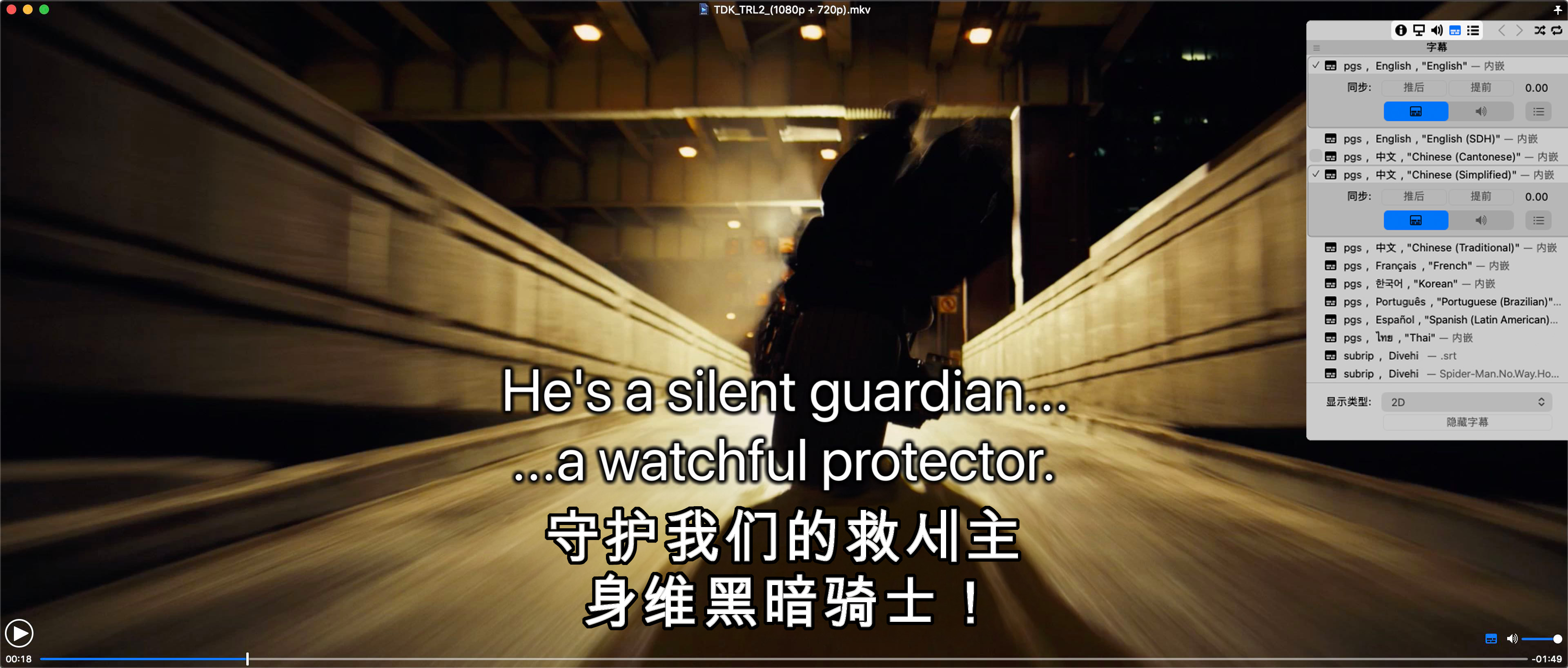 你可以选择画质、查看字幕,并使用 Movist 的所有功能。